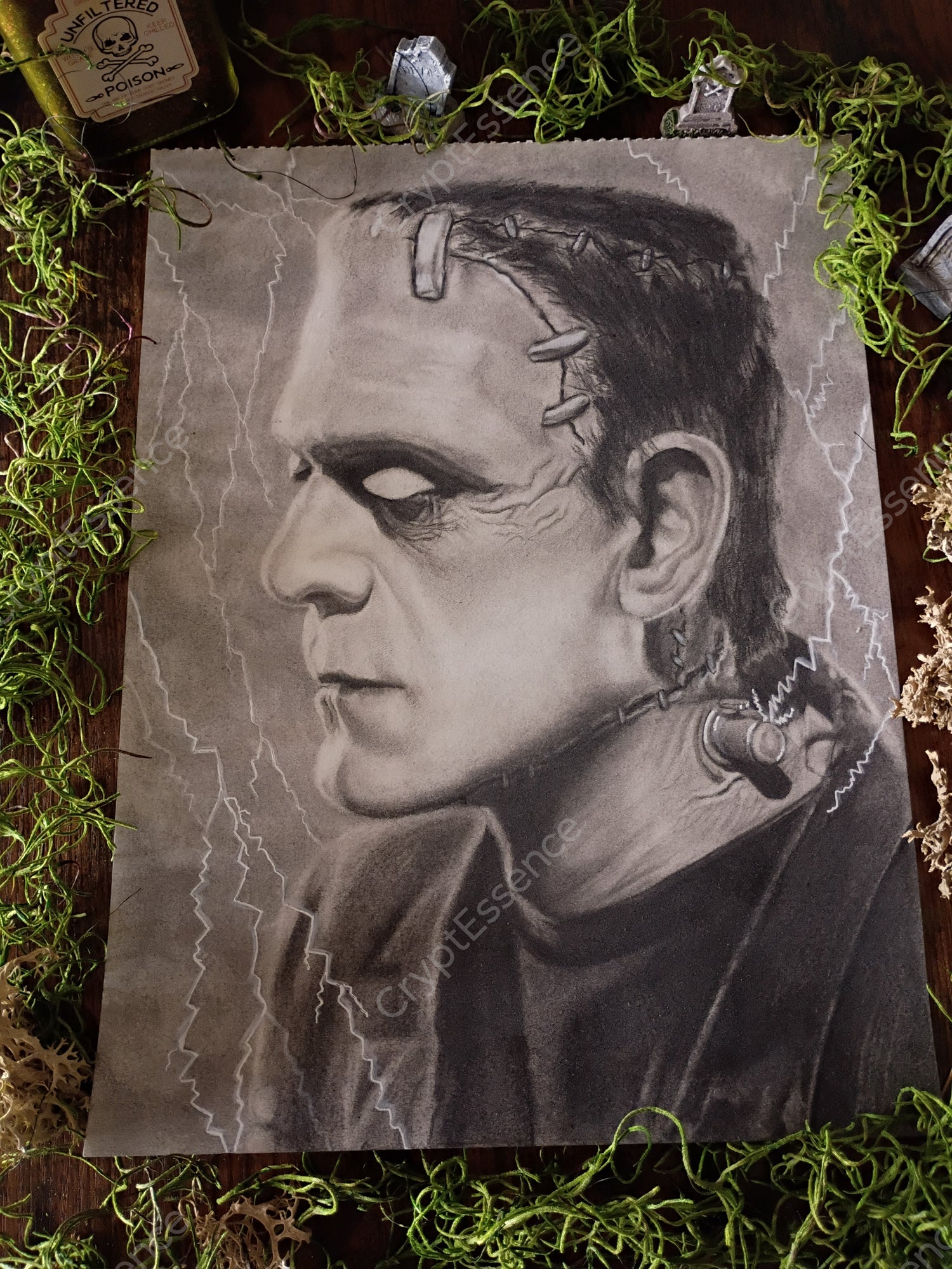 This original charcoal drawing of Frankenstein’s Monster brings eerie elegance to life. Hand-drawn with dramatic contrast and chilling detail, this black-and-white portrait captures the essence of vintage horror. Whether you're decorating a haunted space, building your horror collection, or adding a bold centerpiece to your gothic home, this piece is made to haunt and inspire. Perfect for horror fans, Halloween lovers, and collectors of macabre art. Makes a striking gift or spooky addition to any gothic wall decor.