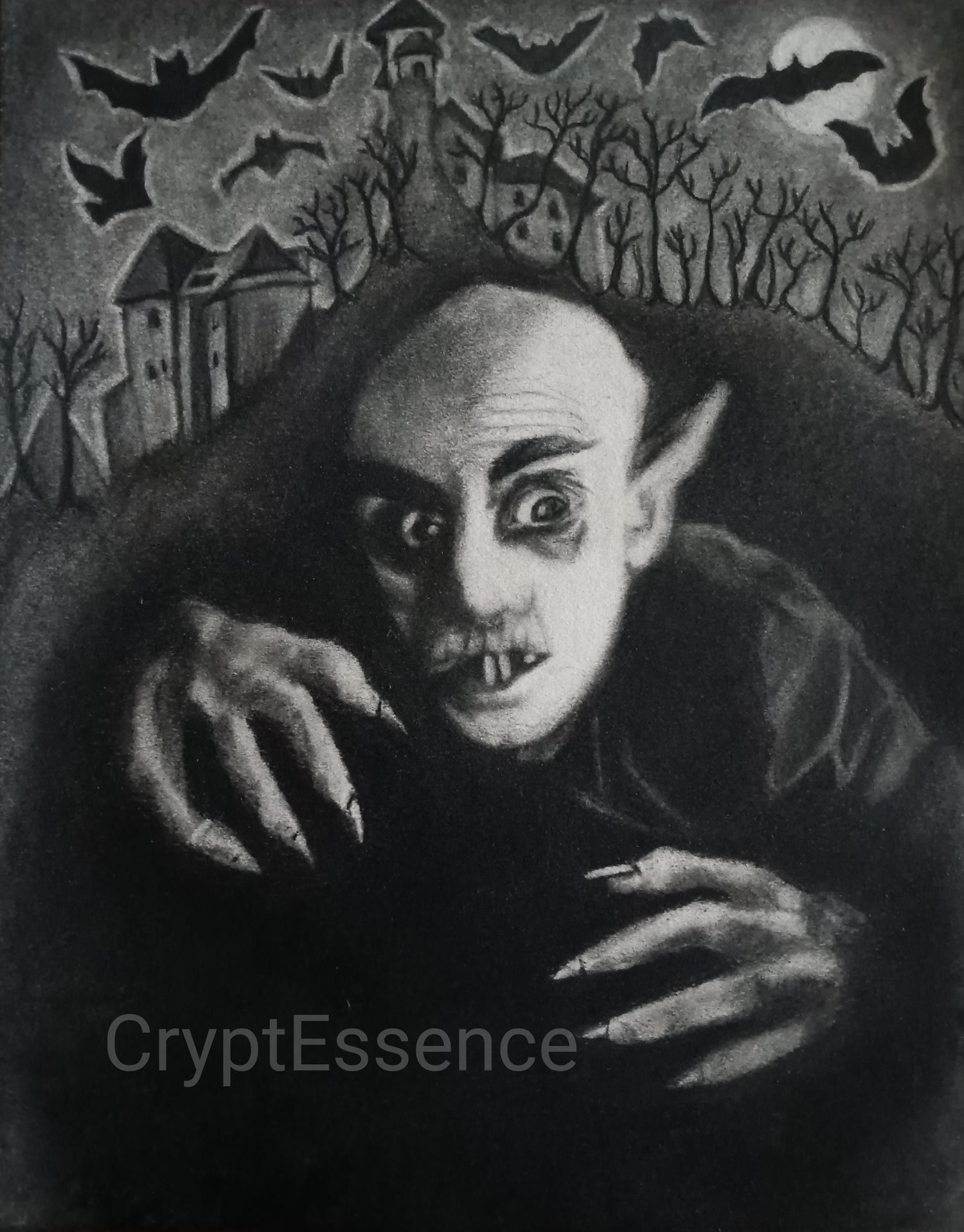 Nosferatu, perfect for lovers of classic horror, Max Schreck's portrayal of Count Orlok and dark fantasy art. This drawing captures his eerie character and the chilling essence of this legendary classic vampire film.